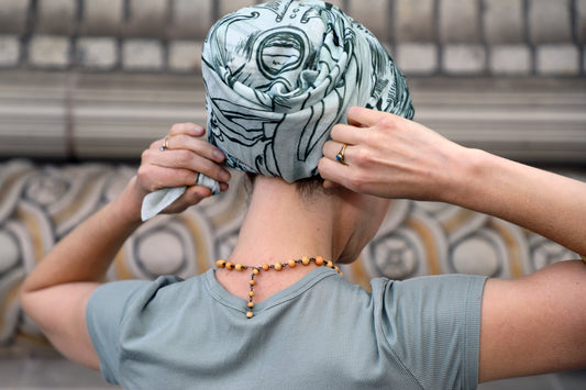 While creating the collection, Sudin drew inspiration from a decade-long meditation practice, study in Kabbalah, and her lifelong tension and personal reclamation of her Jewish identity. Working with scarves helped her translate these esoteric feelings and philosophies into tangible, wearable pieces that speak to women from many backgrounds and walks of life.