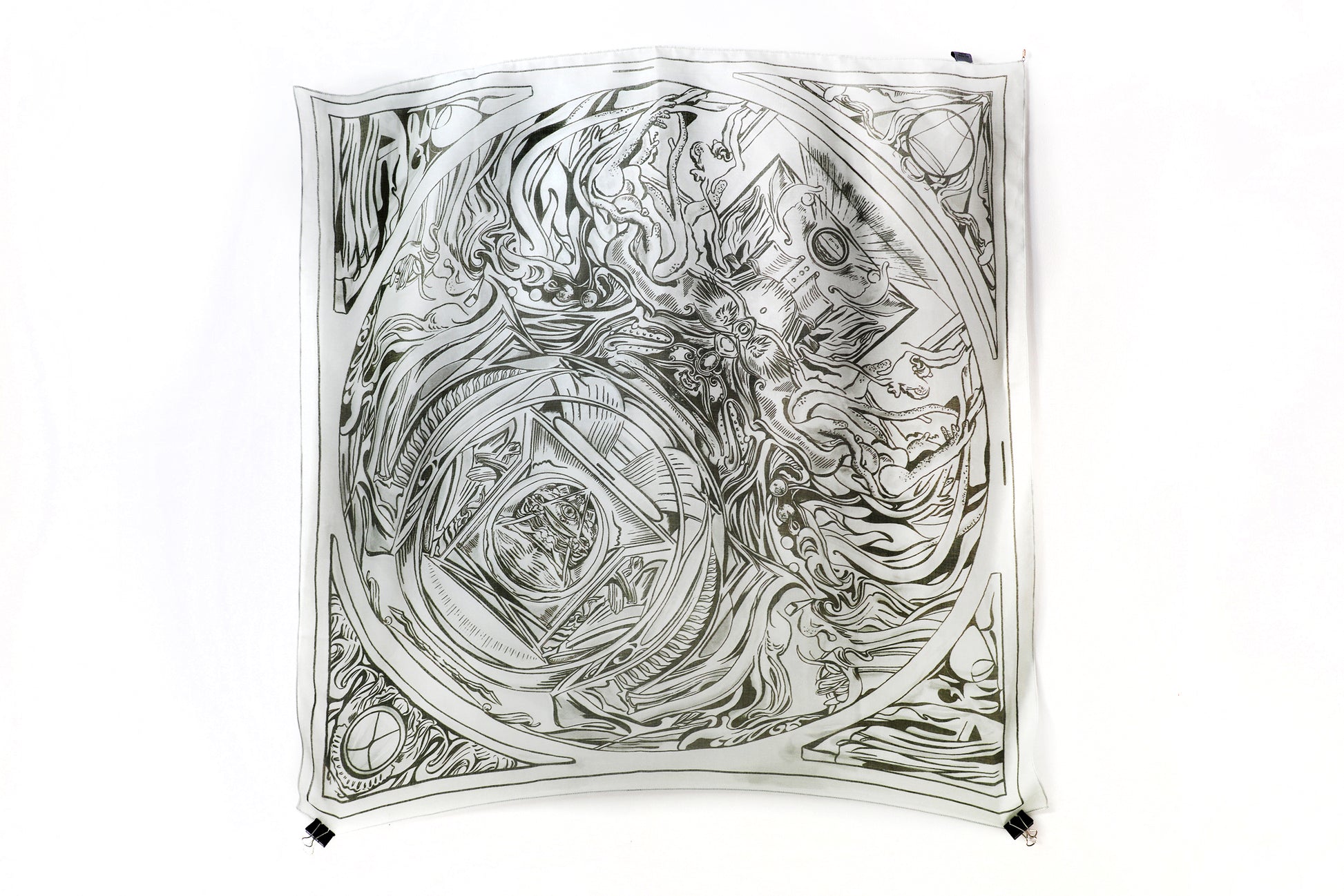 The collection explores the power of finding balance and harmony in a world of duality. The scarves are mystical in nature, unapologetically psychedelic, and evoke the liquid and ethereal. The movement in each design taps into subtle wavelengths to enhance the energy patterns within each of us.