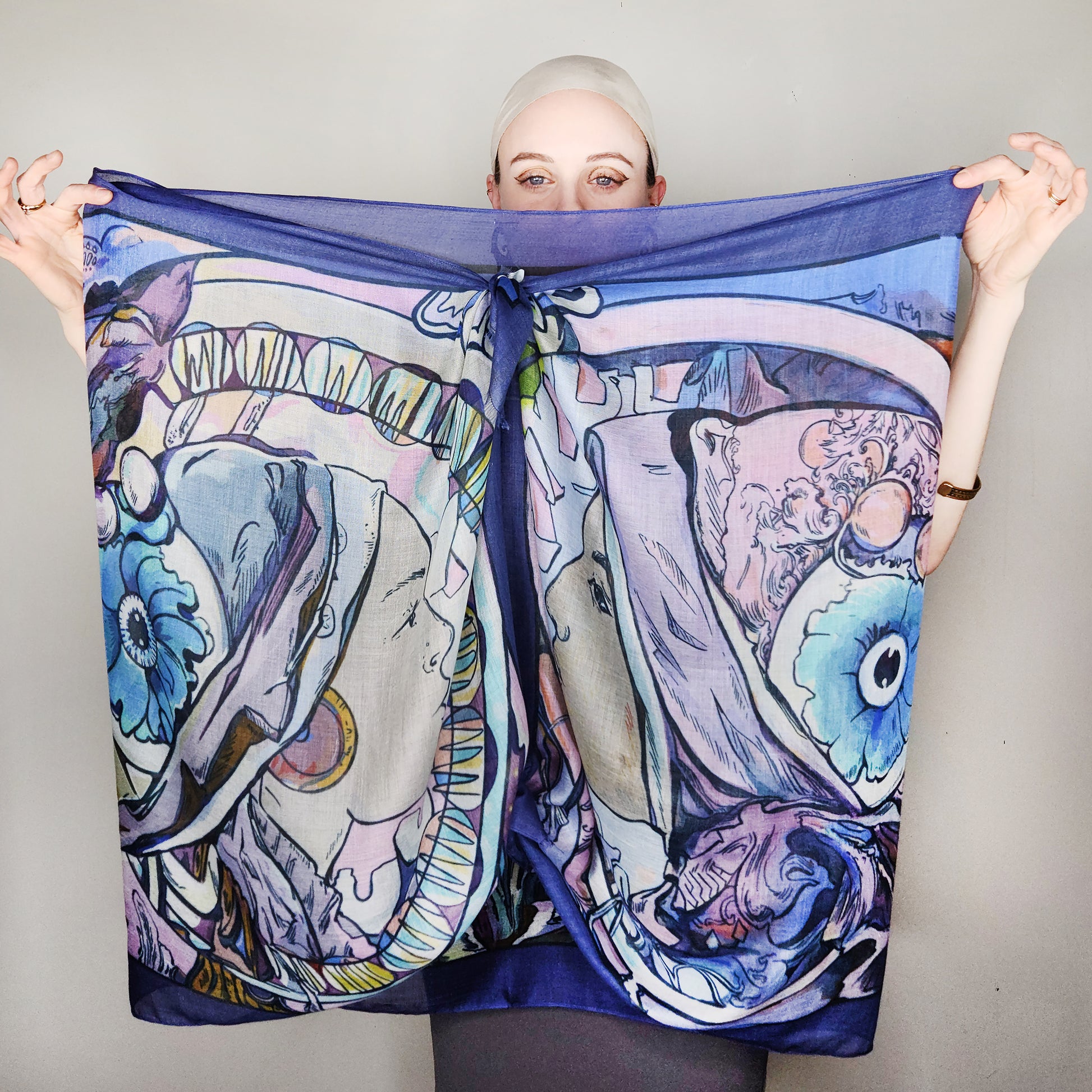 The collection explores the power of finding balance and harmony in a world of duality. The scarves are mystical in nature, unapologetically psychedelic, and evoke the liquid and ethereal. The movement in each design taps into subtle wavelengths to enhance the energy patterns within each of us.